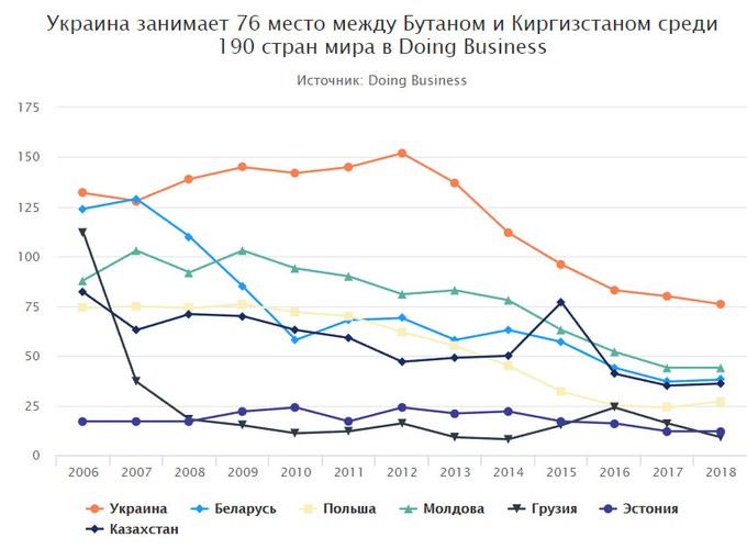 У рейтингу Doing Business Україна посідає 76 місце. "Це заслужено низьке місце, — вважає Гончарук. — Для європейської країни це погано".