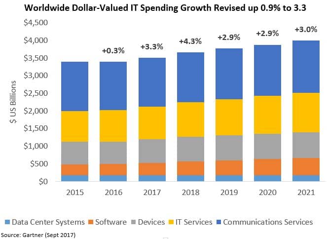 Gartner стверджує, що витрати на глобальні інформаційні технології досягнуть 3,7 трлн. доларів США в 2018 році